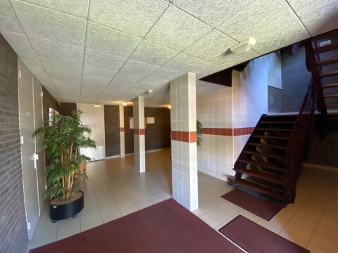 Indeling: Begane grond met bellentableau en brievenbussen. Centrale hal met liftinstallatie, trappenhuis en toegang tot de ruime inpandige berging. Lift/trap naar 1e etage: Entree, ruime hal met meterkast en stookkast met CV installatie. Vanuit deze hal zijn de 2 slaapkamers te bereiken, toilet v.v. fonteintje. De badkamer v.v. douche, wastafelmeubel, 2e toilet, . Hal richting woonkamer, eethoek met toegang tot het balkon (gelegen op het oosten) en de keuken v.v. 4 pits gasfornuis, afzuigkap, combi oven/magnetron, koelkast met vriesvak en een vaatwasser.